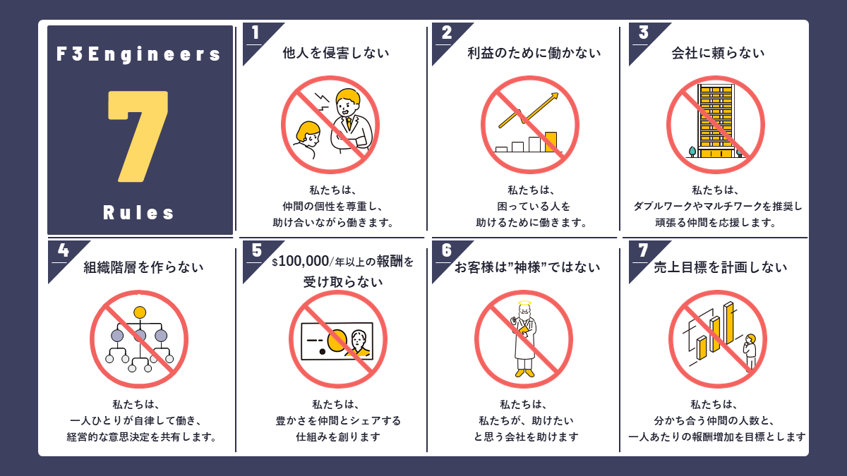 だから私たちは、それを実現したいのです。 超フラットな組織で、豊かさを共有するITエンジニアの会社。