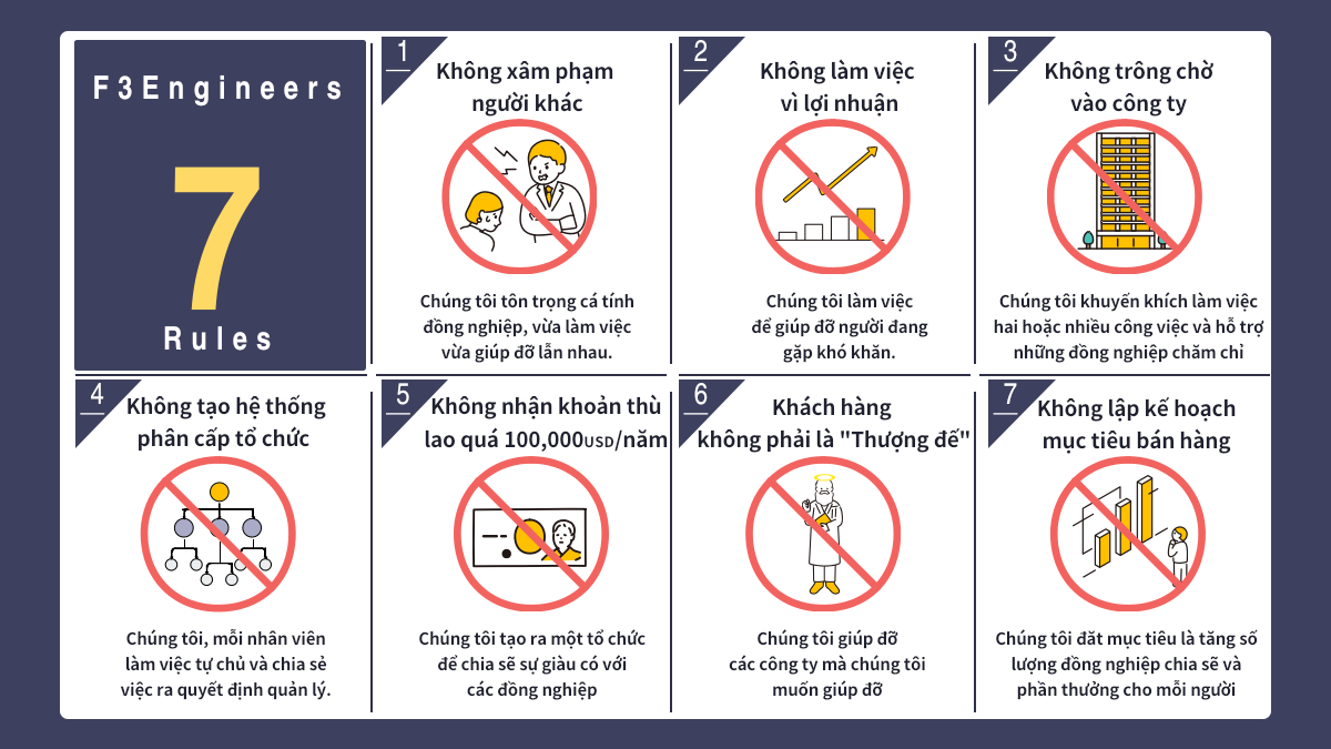 F3Engineers của chúng tôi mong muốn hỗ trợ triển khai và vận hành hệ thống với tư cách là bộ phận hệ thống của khách hàng. Chúng tôi muốn vượt ra ngoài ranh giới các giá trị quan cũ của các công ty, tổ chức và hỗ trợ việc xúc tiến DX của công ty, giống như gia đình và bạn bè của chính mình. Từ đó, tôi tin chắc chắn việc xúc tiến DX thành công sẽ đến.
